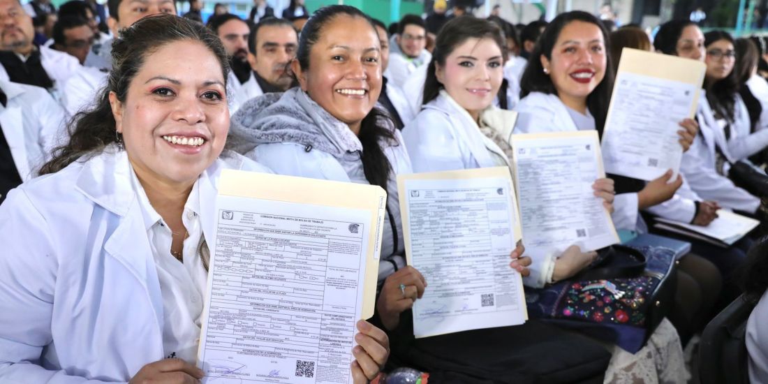 Certeza laboral para reforzar servicios de salud; Bedolla y Zoé Robledo entregan bases a 270 trabajadores del IMSS