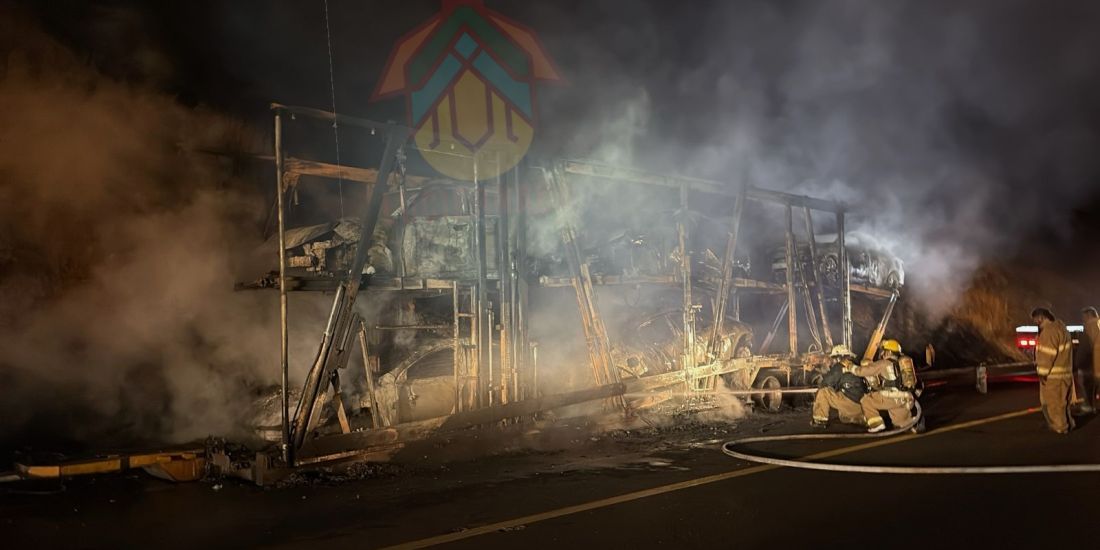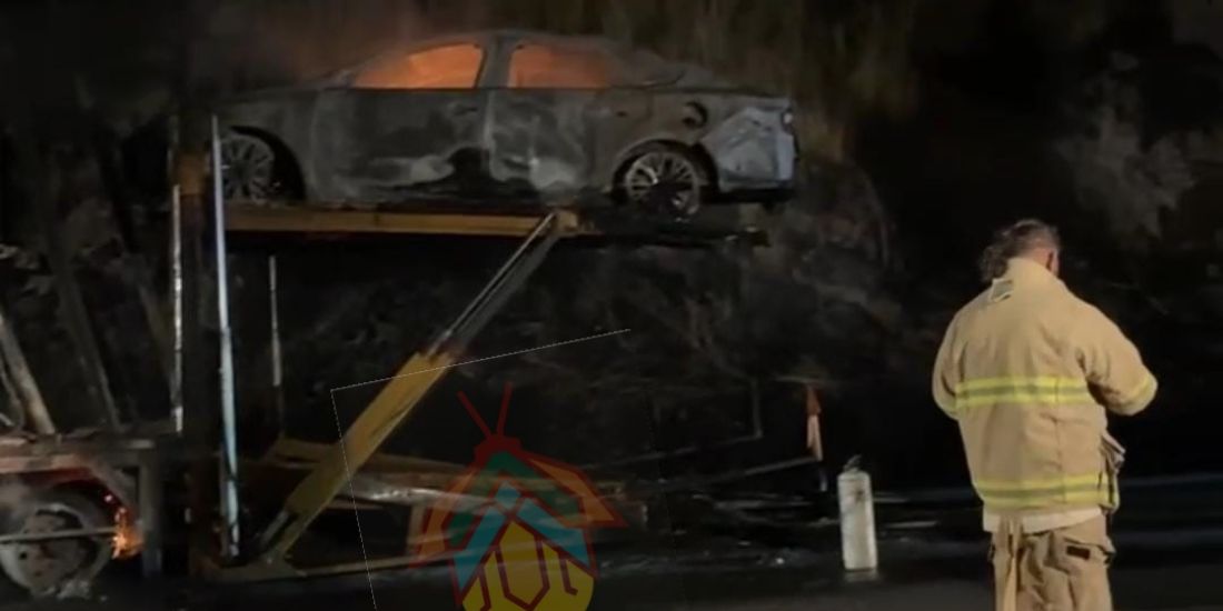 Los Bomberos de Nueva Italia, acudieron para combatir las llamas, pero a pesar de sus esfuerzos, el fuego consumió por completo uno de los remolques y cinco autos que eran transportados en la unidad, los cuales quedaron totalmente calcinados.