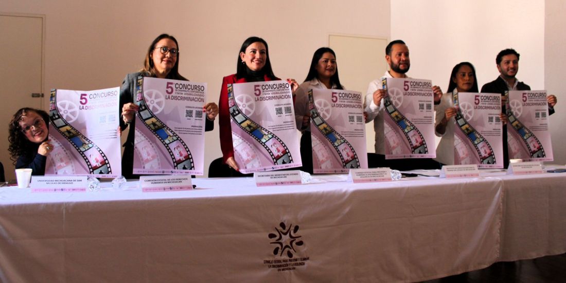 Morelia, Michoacán, 5 de febrero de 2026.- La Secretaría de Gobierno, a través del Consejo Estatal para Prevenir y Eliminar la Discriminación y la Violencia (Coepredv), en conjunto con nueve instituciones públicas, lanzaron la convocatoria para la quinta edición del Concurso de Cineminuto, Cortometraje y TikTok "Visibilizando la Discriminación".