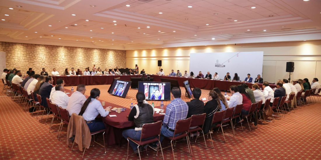 Con el propósito de establecer una mejor coordinación entre autoridades de los tres niveles de gobierno, el mandatario estatal y la funcionaria federal sostuvieron diálogo directo con alcaldes del Norte y Sur de la entidad para escuchar sus opiniones y necesidades a fin de fortalecer la estrategia integral de coordinación.