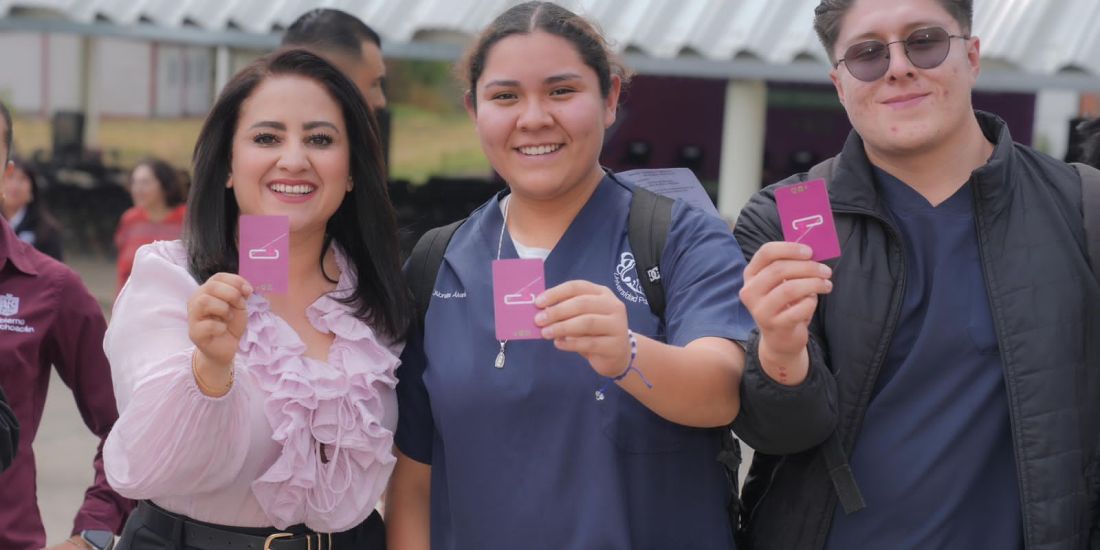 “Hoy les estamos regalando esta tarjeta no solamente como un ahorro. Hoy este mensaje simbólico es hacia ustedes porque estamos poniendo los ojos en atender las necesidades de las y los estudiantes de Michoacán”, remarcó en presencia de la directora general del Instituto de Educación Media Superior y Superior del Estado de Michoacán (Iemsysem), Mariana Sosa Olmeda.