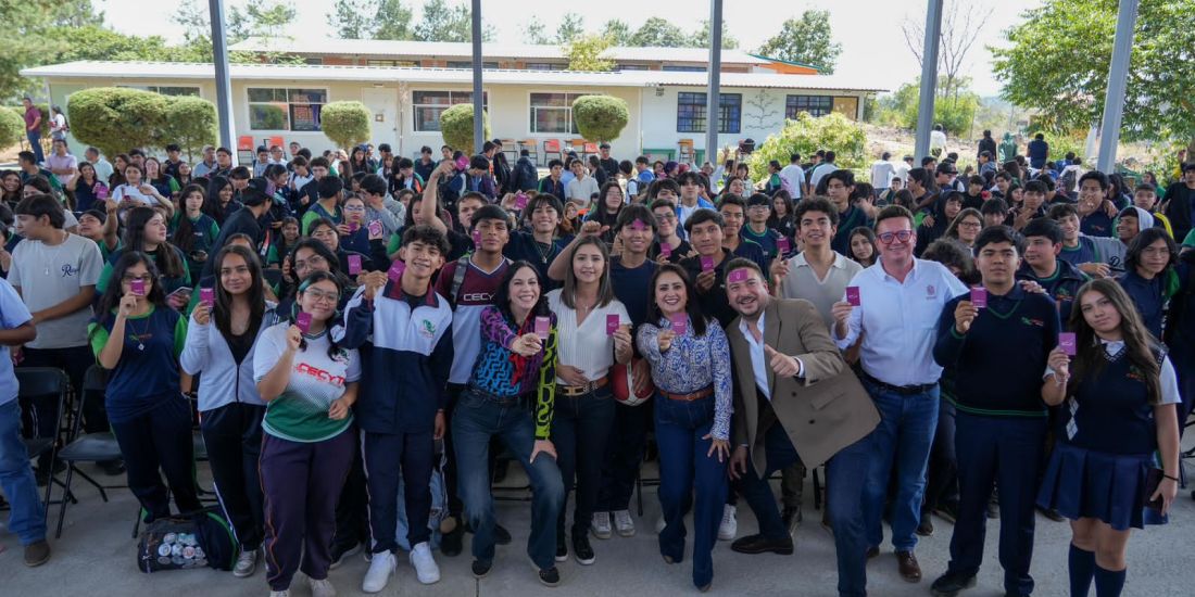 La secretaria de Desarrollo Urbano y Movilidad, Gladyz Butanda Macías, entregó tarjetas prepago de transporte público a estudiantes del Colegio de Estudios Científicos y Tecnológicos de Michoacán (Cecytem) plantel Uruapan, previo a la inauguración de este medio de transporte aéreo.