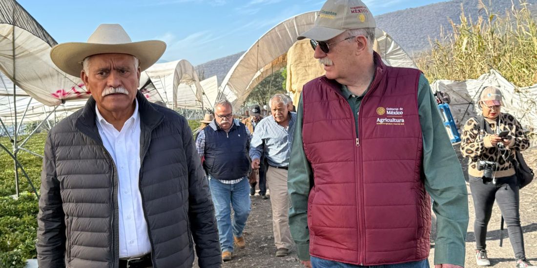 Zamora, Michoacán, 7 de febrero de 2026.- La Secretaría de Agricultura y Desarrollo Rural de Michoacán (Sader), encabezada por Cuauhtémoc Ramírez Romero, realizó una gira de trabajo junto al titular de la dependencia federal, Julio Berdegué Sacristán. El objetivo fue presentar a pequeños productores de fresa los beneficios del Plan Michoacán por la Paz y la Justicia, que incluye estrategias de sanidad, reducción de costos y acceso a créditos de hasta 1.3 millones de pesos con una tasa anual preferencial del 8.5 por ciento, impulsando así la competitividad y comercialización del fruto.