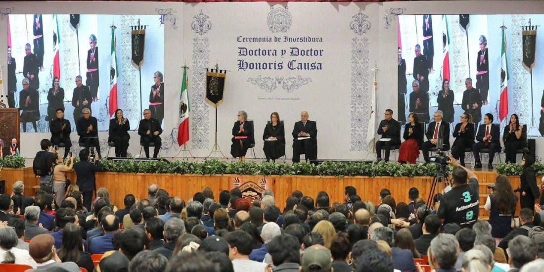 “Participar en este acto solemne es motivo de profundo honor y emoción.  No solo honra sus trayectorias, sino que también reafirma el compromiso de la Universidad Michoacana con el conocimiento, la igualdad y la libertad de pensamiento. Mi compromiso con la Universidad se refleja en la reforma constitucional de noviembre de 2024 donde se le otorga autonomía plena”, dijo.
