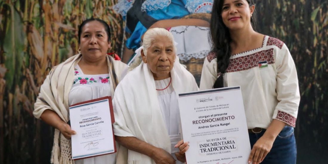 El gobernador Alfredo Ramírez entregó un reconocimiento a la portadora Andrea García Rangel por su labor en la preservación y continuidad de la indumentaria tradicional de la región nahua. También fue reconocida por el mismo concepto María Chaves Rodríguez, originaria de San Juan de las Colchas, comunidad que quedó sepultada tras la erupción del volcán Paricutín.
