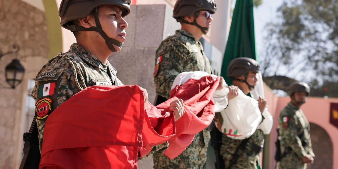 Al encabezar la Ceremonia Conmemorativa al Día de la Bandera y el Abanderamiento de Instituciones Educativas en la XXI Zona Militar, el mandatario señaló que el Ejército mexicano demostró este fin de semana que vela siempre por la soberanía nacional, las instituciones y la tranquilidad de nuestras familias.