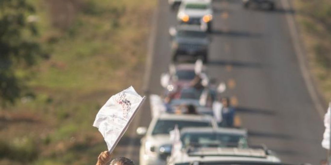 En la caravana, que partió de Ciudad Hidalgo y cesó en la plaza central de Tuxpan, Raúl Morón estuvo acompañado por cientos de ciudadanas y ciudadanos que condenaron la arbitrariedad e ilegalidad con que el Instituto Nacional Electoral (INE) pretende parar la transformación de Michoacán.