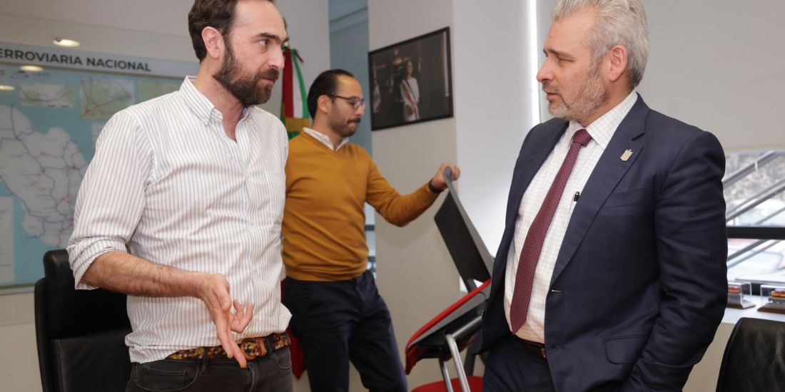 Morelia, Michoacán, 16 de febrero de 2025.- El gobernador Alfredo Ramírez Bedolla anunció al director general de la Agencia Reguladora de Transporte Ferroviario, Andrés Lajous Loaeza, la construcción del paso superior vehicular del Periférico Independencia con recursos 100 por ciento estatales.