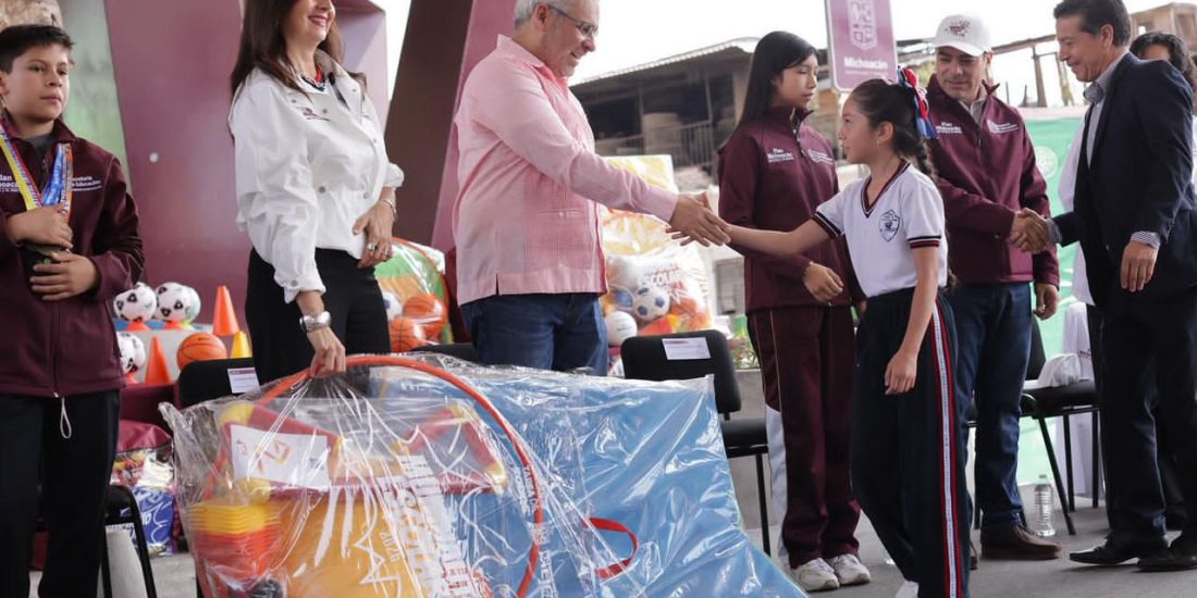 Arranca Bedolla en Uruapan entrega de material deportivo para más de 234 mil estudiantes