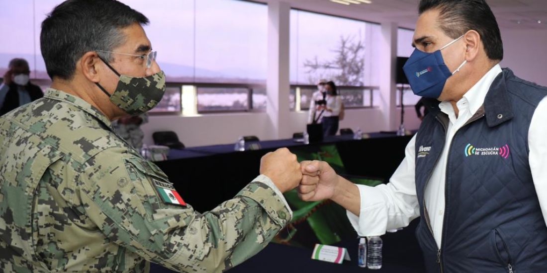 "Hay una lucha aquí entre los grupos delincuenciales que tienen presencia en Michoacán y el que pretende ingresar al estado desde la entidad vecina de Jalisco, eso nos ha disparado mucho el homicidio en esta región, así que requerimos todo el apoyo del Ejército y de la Guardia Nacional para tener un importante estado de fuerza y equipamiento para hacer frente a estos grupos", dijo Aureoles Conejo.