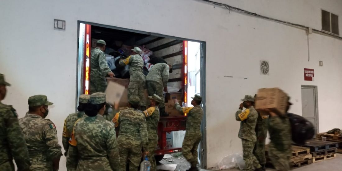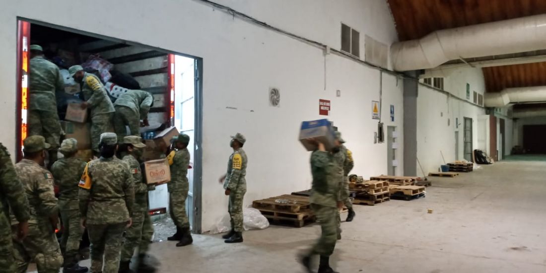 Integrantes de la Secretaría de la Defensa Nacional se encargaron de recibir las más de 28 toneladas de víveres y artículos no perecederos que se lograron recaudar en los doce centros de acopio que se instalaron en Morelia y otras ciudades del interior del estado.