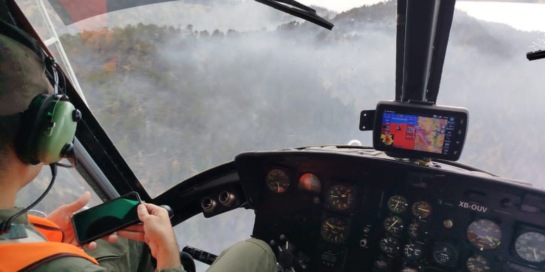 Nuevo Urecho, Michoacán, 8 de abril de 2026.- Con el objetivo de sofocar el incendio forestal registrado en la localidad de La Cebadilla, el Gobierno de Michoacán fortaleció el despliegue operativo en el municipio de Nuevo Urecho. La estrategia incluye el apoyo aéreo de un helicóptero equipado con helibalde, perteneciente a la Secretaría de Seguridad Pública.
