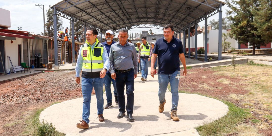 Con recursos provenientes de remanentes del Fondo de Aportaciones Múltiples (FAM) 2024, la rehabilitación general incluye labores de pintura y sustitución de impermeabilizante y luminarias, tanto en los módulos de aulas existentes, como en la barda perimetral y el acceso a la institución. Asimismo, la SCOP construye una nueva cancha de usos múltiples y oficinas administrativas para los turnos matutino y vespertino, además de la instalación de un módulo de “Internet para todos”.