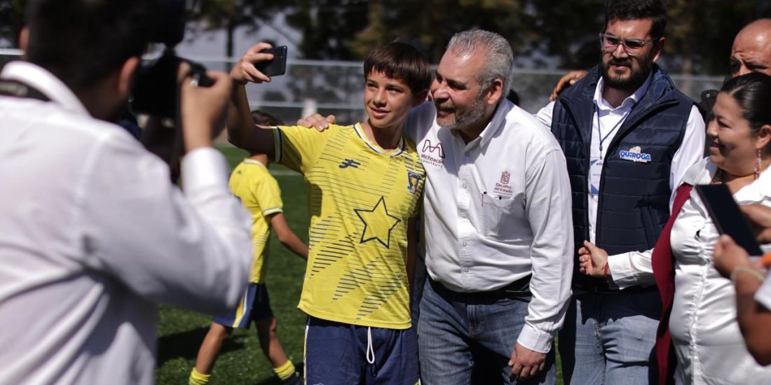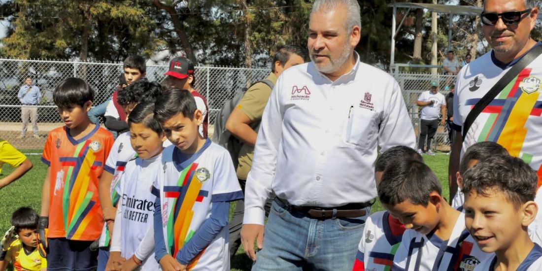 Bedolla comprometido con la paz y la seguridad; inaugura cancha en Quiroga