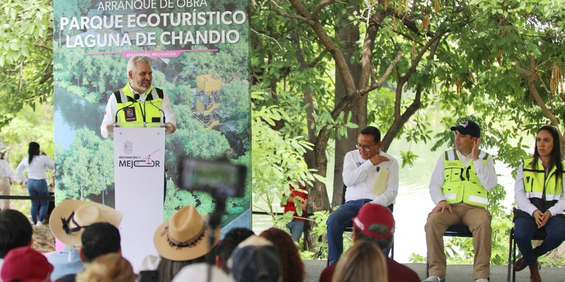Apatzingán, Michoacán, 10 de julio de 2025.-El gobernador Alfredo Ramírez Bedolla dio inicio a la obra de construcción del Parque Ecoturístico Laguna de Chandio, la cual será un punto de encuentro para la convivencia de las familias de Apatzingán y un legado para más de 126 mil habitantes del municipio.