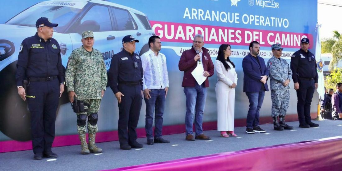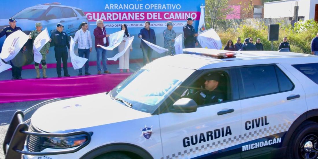 Álvaro Obregón, 20 de diciembre de 2025.- Para reforzar la seguridad en la red carretera de la zona aledaña al Aeropuerto de Morelia, el gobernador Alfredo Ramírez Bedolla puso en marcha el operativo interinstitucional “Guardianes del Camino”, donde participan agentes de la Guardia Civil, Guardia Nacional, Policía de Morelia y de los municipios de Álvaro Obregón, Queréndaro y Zinapécuaro, quienes operarán las 24 horas del día.
