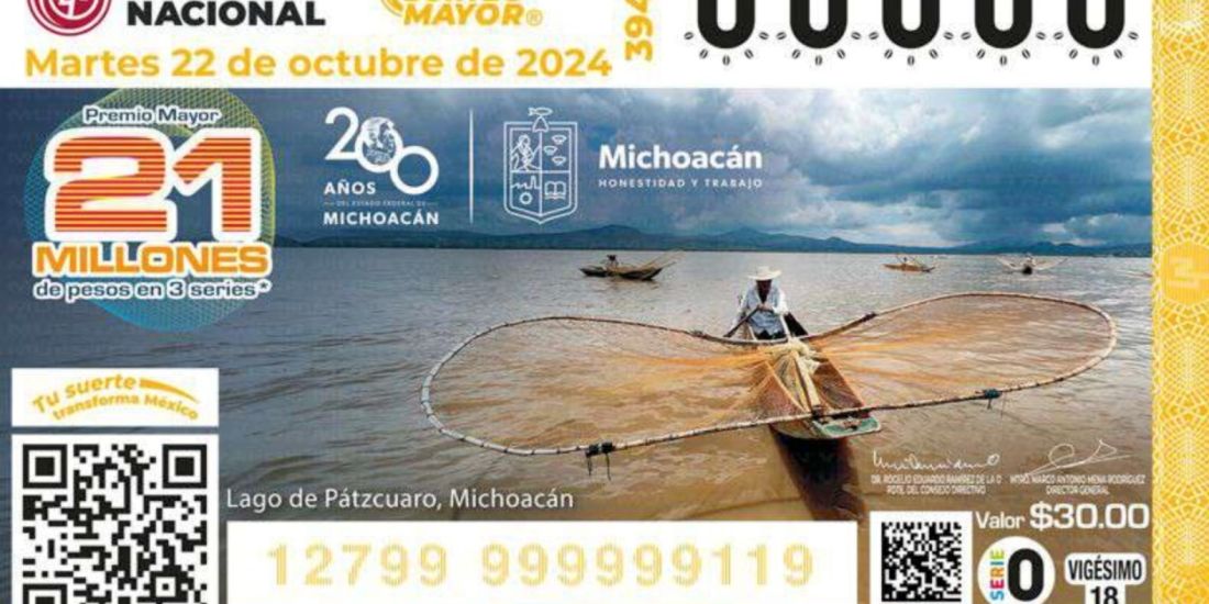 Este chachito de Michoacán que destaca la cultura del estado y sus bellos paisajes, cuenta con un premio mayor de 21 millones de pesos y su sorteo se realizará el martes 22 de octubre.
