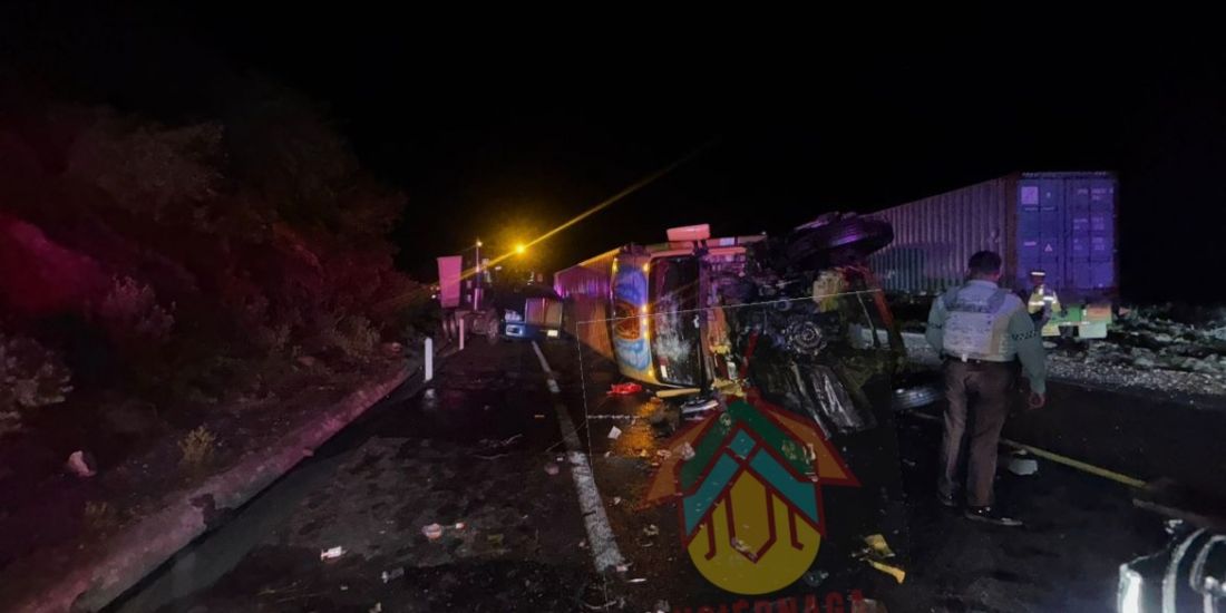 Arteaga, Mich., 26 de agosto de 2025.- El choque entre dos camiones de carga y la volcadura de una pipa cargada con combustible sobre la autopista Siglo XXI, en las inmediaciones del municipio de Arteaga, dejó como saldo al menos un lesionado, cuantiosos daños materiales y obligó al cierre de la vialidad por más de 11 horas. .