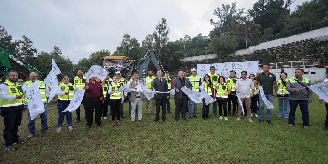 Morelia, Michoacán, 1 de septiembre de 2025.- El secretario de Finanzas y Administración, Luis Navarro García, dio inicio a la construcción de dos canchas de futbol en la secundaria federal 2, “Hermanos Flores Magón”. La obra, con una inversión de 10 millones de pesos, beneficiará directamente a 666 alumnos e indirectamente a mil 998 estudiantes, en cumplimiento al compromiso del gobernador Alfredo Ramírez Bedolla.