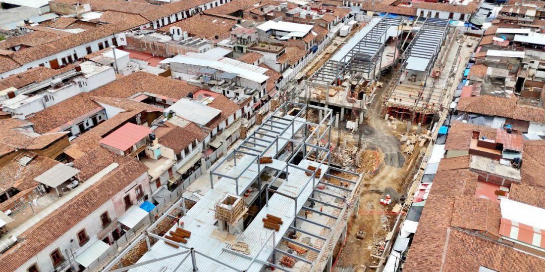 Con 45% de avance, comerciantes revisan obra del nuevo mercado de Pátzcuaro