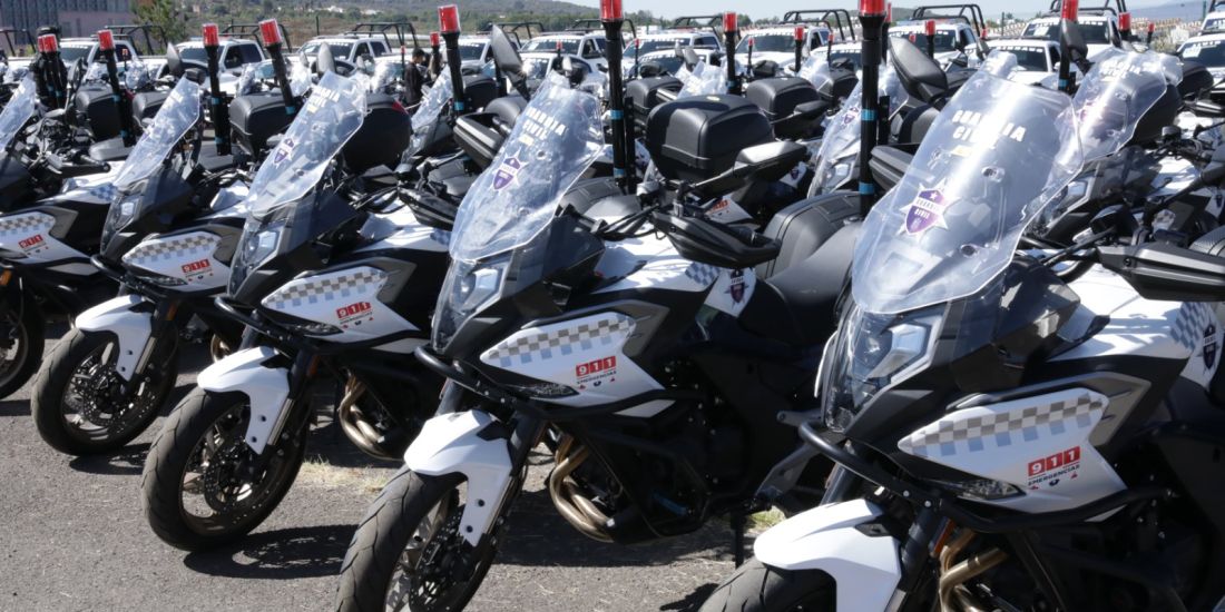 El mandatario destacó que el equipamiento adquirido con recursos estatales y federales se conforma de 231 vehículos automotores y 150 de vehículos no motorizados, mismo que fortalece los trabajos de seguridad que se llevan a cabo tanto en la red carretera, como en zonas rurales y urbanas de la entidad.