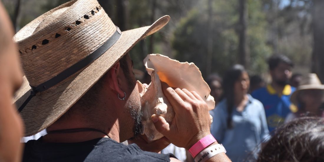 Tzintzuntzan, Michoacán, 13 de marzo de 2024.- Al sonido del caracol y las ocarinas, portadoras y portadores de tradición de los pueblos originarios de Michoacán pidieron permiso a los vientos del sur, norte, oriente y poniente, así como al corazón de la tierra y el sol, para realizar el próximo encuentro de la K’uínchekua en las Yácatas de Tzintzuntzan, que dará inicio mañana jueves.