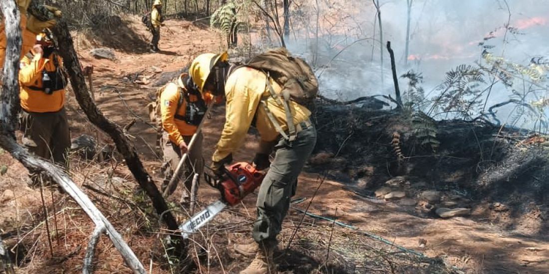 Asimismo, se contó con el apoyo de un helibalde perteneciente al Gobierno del Estado, que realizó nueve descargas el día de ayer en la zona afectada por el fuego.