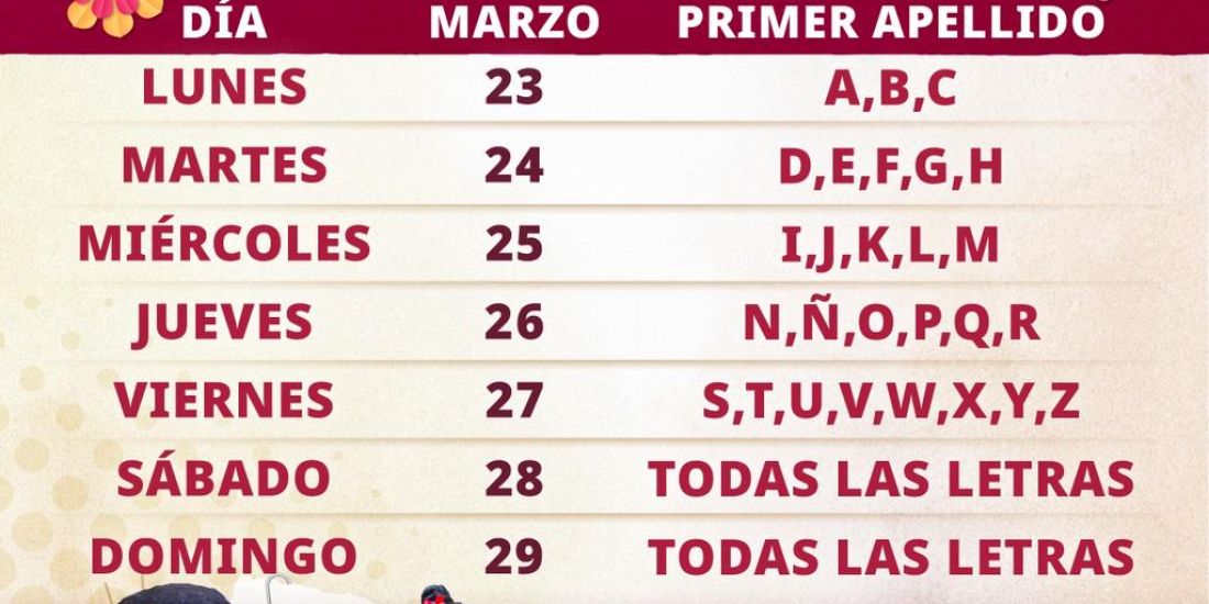 - Viernes 27 de marzo: S, T, U, V, W, X, Y, Z