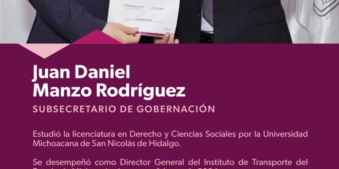 Manzo Rodríguez posee experiencia en el servicio público, ocupó la Dirección de Gobernación de 2021 al 2023, fue titular del Instituto del Transporte y secretario del Ayuntamiento de Uruapan, entre otros cargos.
