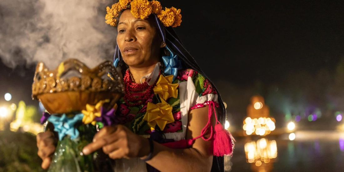 Previo al espectáculo por las venas de los canales de Urandén, turistas y visitantes pueden caminar por los senderos iluminados por velas y adornados por flores de cempasúchil, que además entregan un aroma único al espacio que puede ser visitado por personas de todas las edades.
