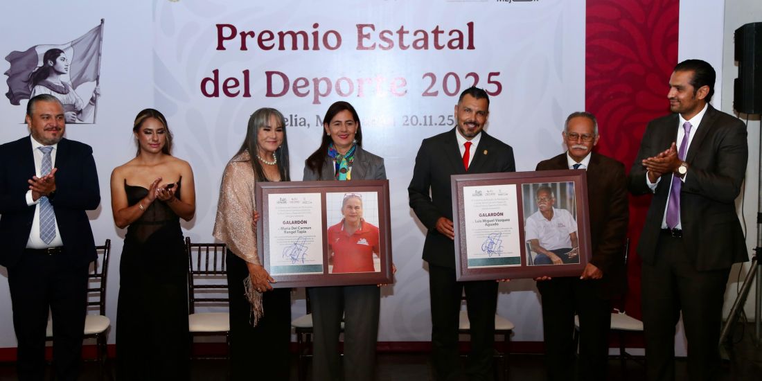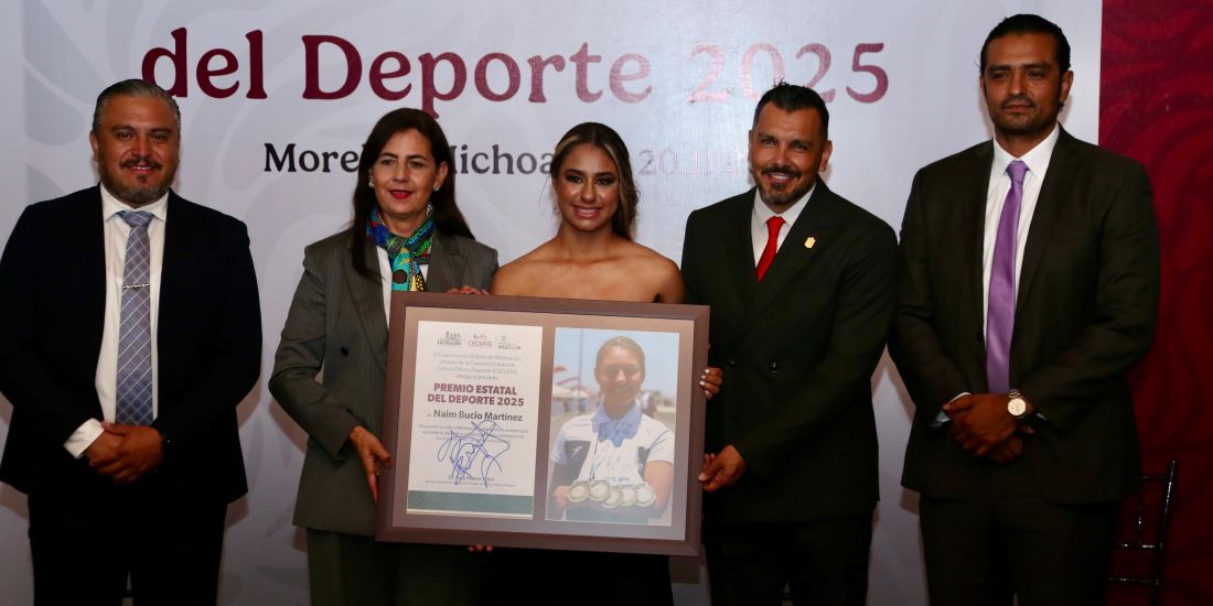 Morelia, Michoacán, 21 de noviembre de 2025.- La Comisión Estatal de Cultura Física y Deporte (Cecufid) entregó el Premio Estatal del Deporte 2025 a la patinadora Naim Bucio Martínez y a la Asociación Michoacana de Judo, en el apartado de Protección o Impulso a la Práctica de los Deportes.
