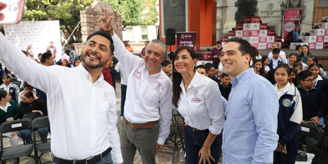 Alrededor de 520 pares de tenis del Programa Jalo a Estudiar fueron entregados, cientos de libros del plan En Michoacán se lee, y obra en tres escuelas públicas por 4.7 millones de pesos, de las cuales dos fueron inauguradas este martes.