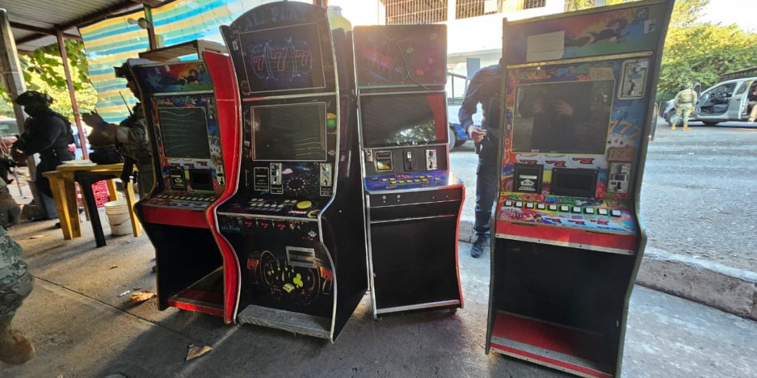 Derivado de trabajos de inteligencia e investigación, las autoridades intervinieron domicilios y locales comerciales, ubicados en las colonias Centro, Comunal Morelos y Las Guacamayas, logrando el aseguramiento de 185 máquinas tragamonedas, presuntamente utilizadas para actividades ilícitas.