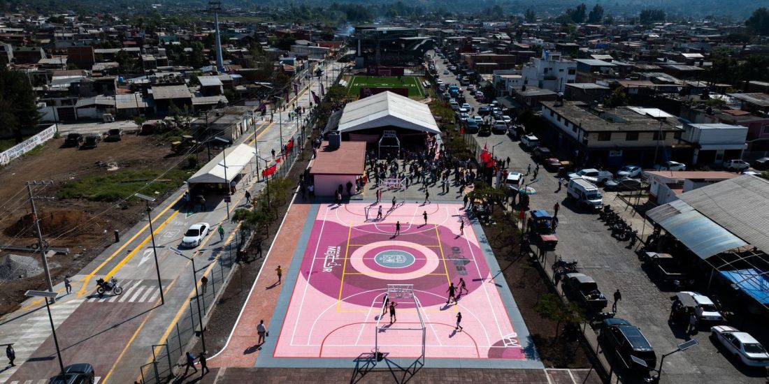 Uruapan, Michoacán, 19 de diciembre de 2025.- El Plan Michoacán por la Paz y la Justicia se está haciendo efectivo y como prueba de ello la secretaría de Desarrollo Urbano y Movilidad, Gladyz Butanda Macías, rehabilitó tres calles y una unidad deportiva en la colonia Antorchistas de Uruapan, obras complementarias al teleférico.