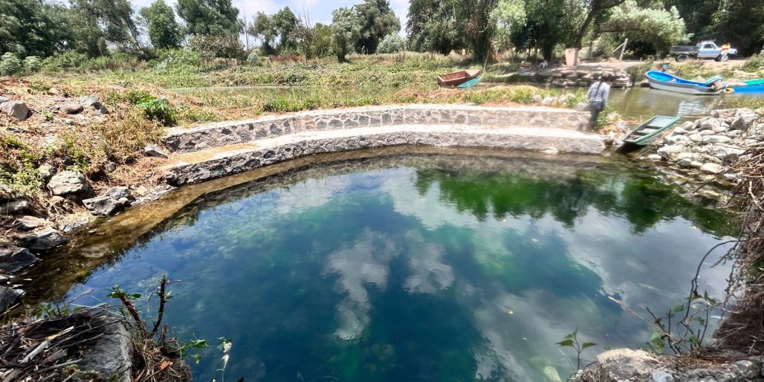 Asimismo, en el canal y manantial de Tzentzénguaro, se han retirado 400 metros cúbicos de material sólido y se han desmalezado 3 mil 550 metros cuadrados manualmente, lo que ha permitido liberar 12 nacimientos de agua.