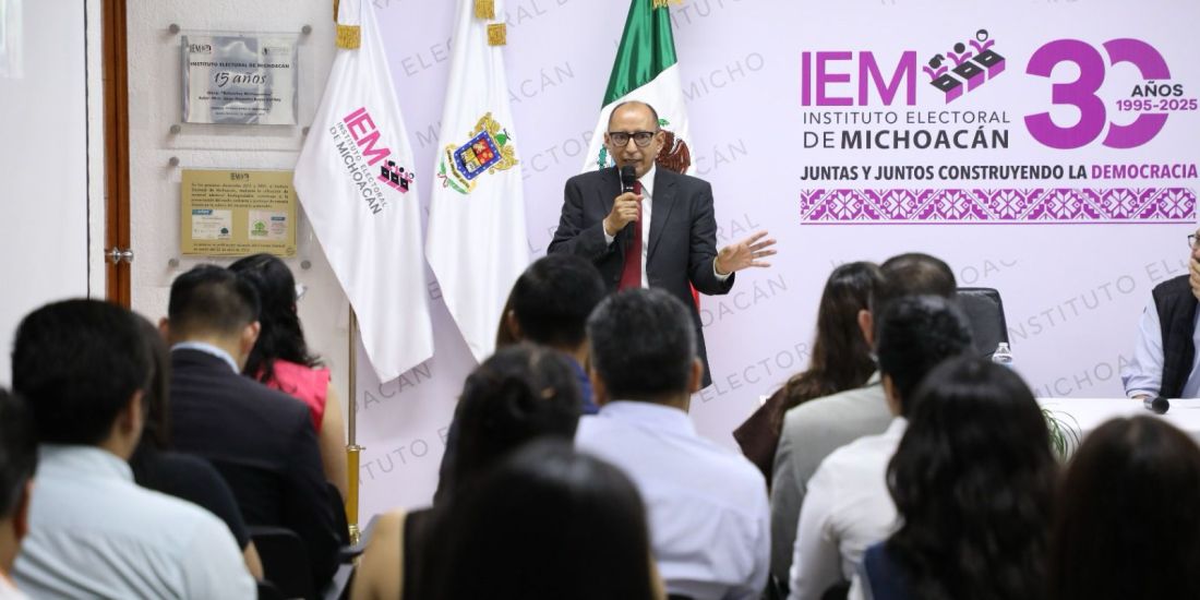 Morelia, Michoacán, 22 de septiembre de 2025.- Con el objetivo de reflexionar sobre el impacto de la tecnología en los sistemas electoral y legal, así como analizar sus retos y oportunidades, el Instituto Electoral de Michoacán (IEM) inauguró el ciclo de pláticas “Cómo la tecnología transforma el sistema electoral y legal”, a cargo del Lic. Otilio Esteban Hernández Pérez, especialista en derecho y tecnologías aplicadas.
