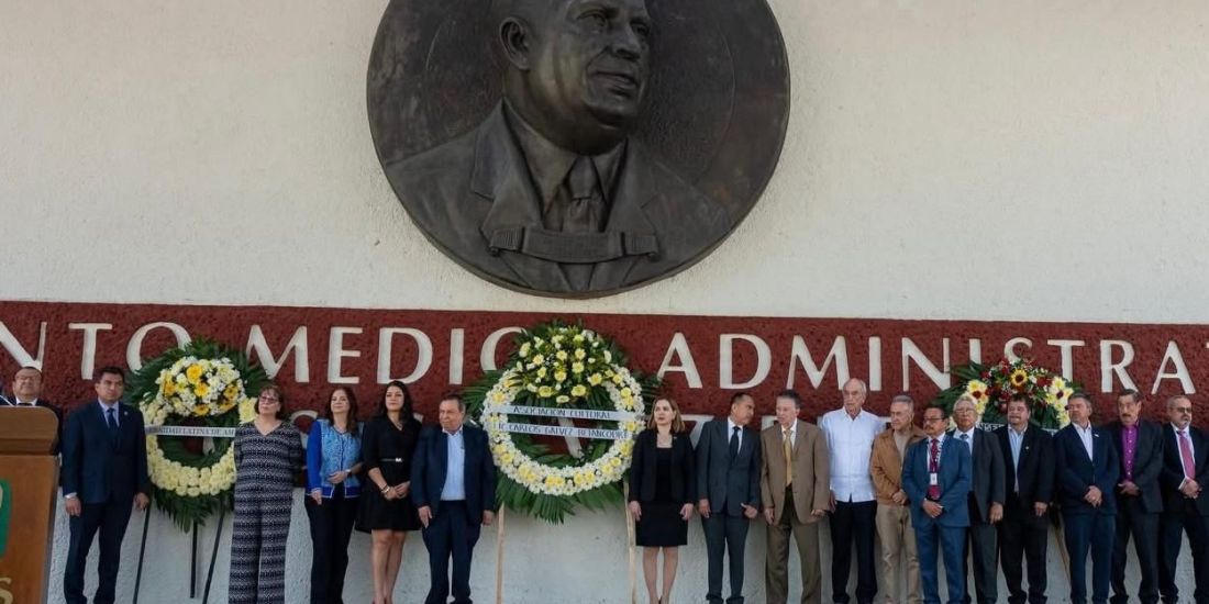 Finalmente se depositaron ofrendas florales y se montó una guardia de honor en el busto de la plaza del IMSS que lleva el nombre del homenajeado.