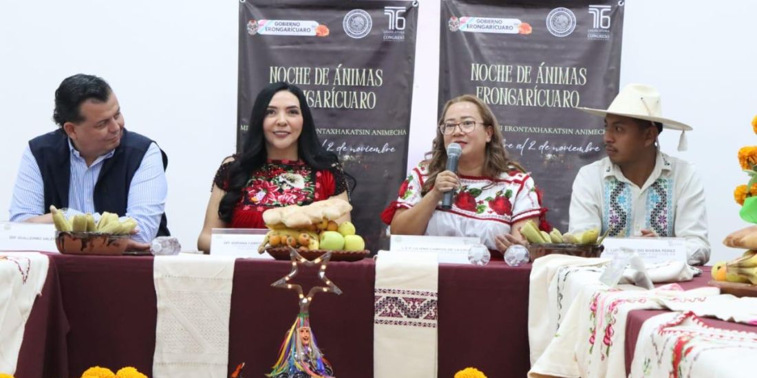 En rueda de prensa, la legisladora coordinadora del Grupo Parlamentario del PRI, acompañada de su homologo, Guillermo Valencia Reyes, quien invitó a la ciudadanía a vivir la experiencia en esta nueva alternativa; así como, de la presidenta municipal de Erongarícuaro, Liliana Campos de la Luz; Luis Rivera, Director de turismo y Cultura; Eduardo Cabrera, titular de Seguridad Pública Municipal; Ericka Lara, directora de Protección Civil, todos de dicho municipio, dieron a conocer el programa de actividades que se llevarán a cabo en el evento denominado “Con el corazón esperamos a las ánimas".