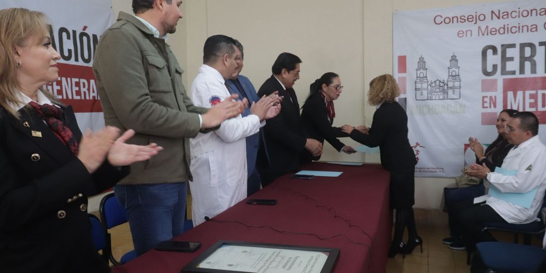 Así pues, recibieron sumarse certificación y recertificación, las y los médicos generales: Minerva Estrada Contreras, Guadalupe Juana María Naranjo Salgado, Missouri Elvira Raya Arellano, Álvaro Gutiérrez Vázquez, Herbert Ticate Pérez, Yulma López Gómez, Claudia Rojas Soriano, Luis Rafael Álvarez Bribiesca, Marisela Romero Ávalos y Salvador Yafoya Camarena.