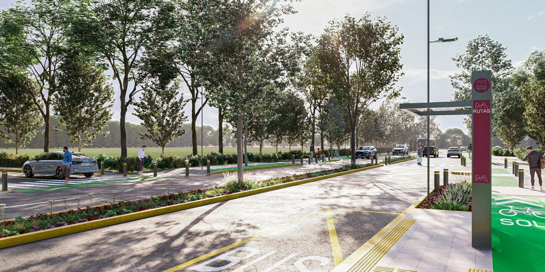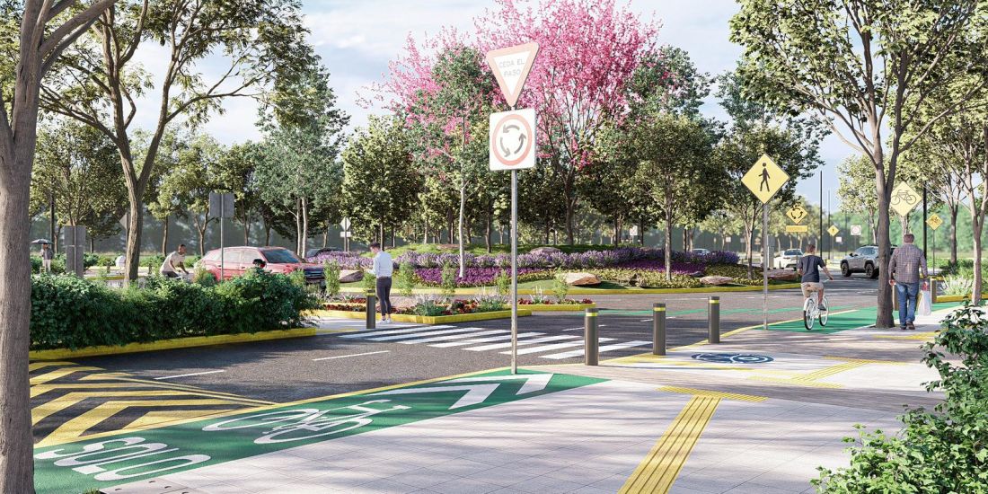 En el marco de una infraestructura funcional e incluyente, la obra también contempla paradas de autobuses, rampas peatonales, luminarias solares, bancas de concreto, bolardos, guía podotáctil para personas con discapacidad visual e infraestructura verde.