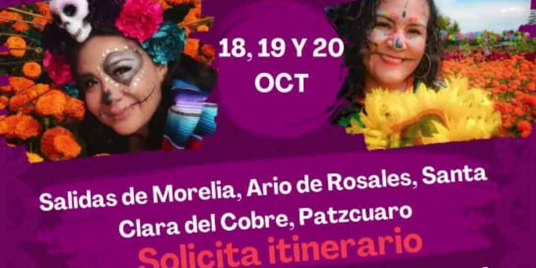 Lizbeth Huerta Calderón de Ecoturismo Morelia, informó que las salidas que preparan son para los días viernes, sábados y domingos. “Nosotros incluimos viaje redondo en 600 pesos, recorrido por los campos de las flores de Copándaro con guías acreditados, más el maquillaje de catrina y degustación de pulque. Además, visitaremos Copándaro y Tarímbaro”.