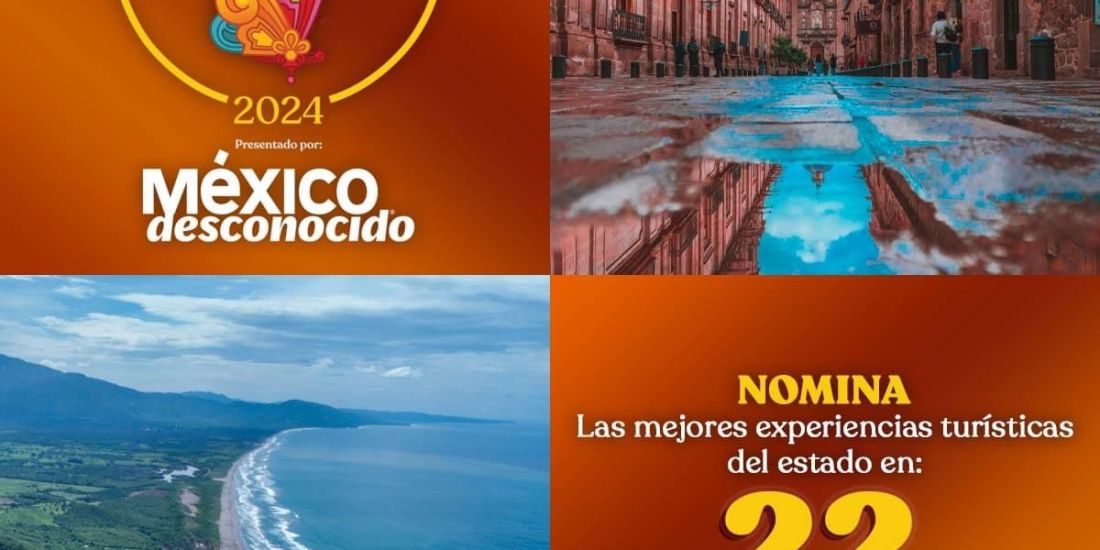 Tienes hasta el sábado 7 de septiembre para nominar tu experiencia y travesía en la naturaleza, tu hotel favorito, el platillo tradicional que conquistó tu paladar, o el momento cultural que recuerdas, entre otras que son parte de las 22 categorías en los premios “Lo mejor de Michoacán”, los cuales son organizados por la revista México Desconocido en colaboración con la Secretaría de Turismo del Estado, encabezada por Roberto Monroy García.