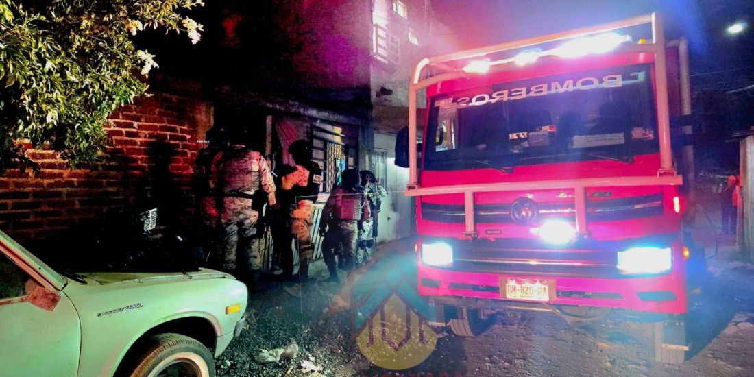 Zamora Mich., 4 de marzo de 2026.- Un fuerte incendio se registró en una casa de la colonia Revolución de la ciudad de Zamora. Oficiales de la Guardia Nacional acudieron para otorgar apoyo y lograron poner a salvo a una familia que habitaba el inmueble siniestrado.