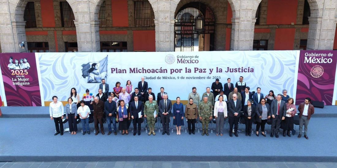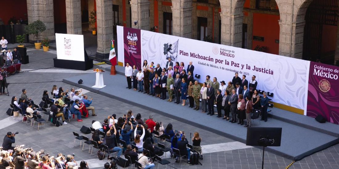 Ciudad de México, 9 de noviembre de 2025.- El gobernador Alfredo Ramírez Bedolla y la presidenta Claudia Sheinbaum Pardo presentaron el Plan Michoacán por la Paz y la Justicia, estrategia integral que contempla 57 mil millones de pesos del Gobierno federal y 2 mil 700 millones del Gobierno estatal para 100 acciones en 12 ejes como seguridad, justicia, salud, educación, infraestructura, desarrollo, entre otros rubros.