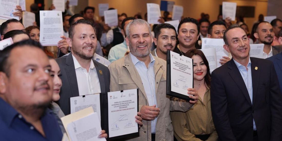 Refrenda Bedolla compromiso con familias migrantes; firma convenio con presidentes