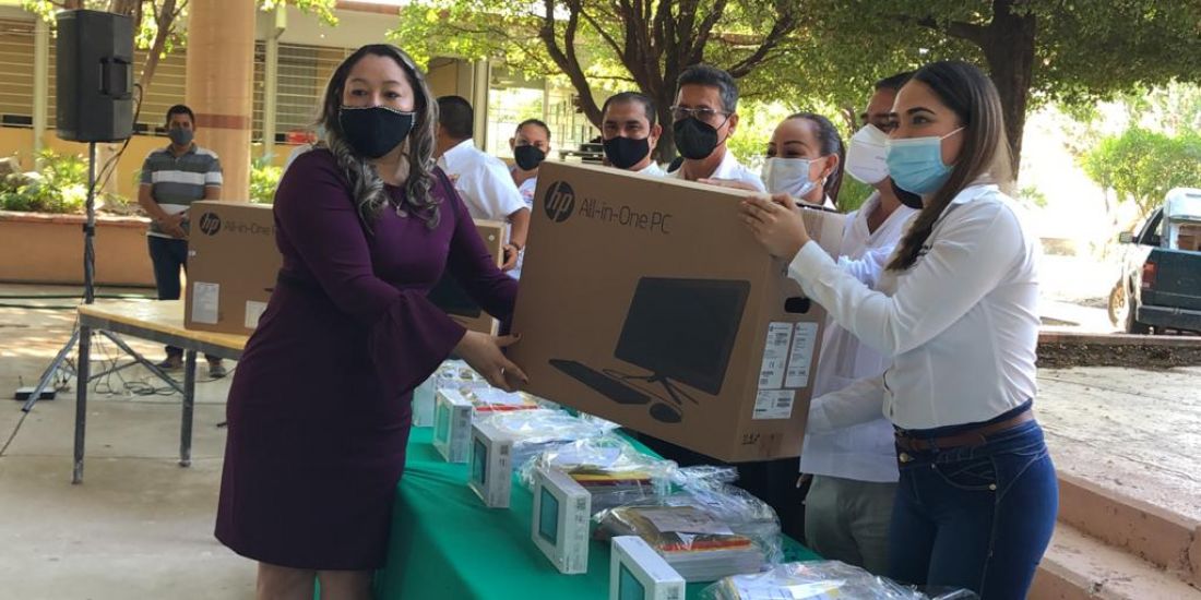 SEE y ayuntamiento de Huetamo entregan computadoras y tablets para alumnos del municipio
