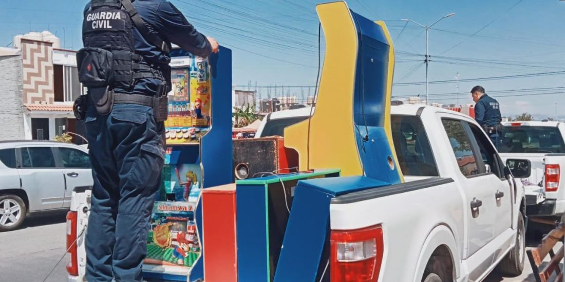 El personal de la SIE realizó actos de investigación y patrullajes en el fraccionamiento Villas del Pedregal; producto de estas movilizaciones se decomisaron los juegos en seis giros comerciales utilizados para promover esos sorteos.