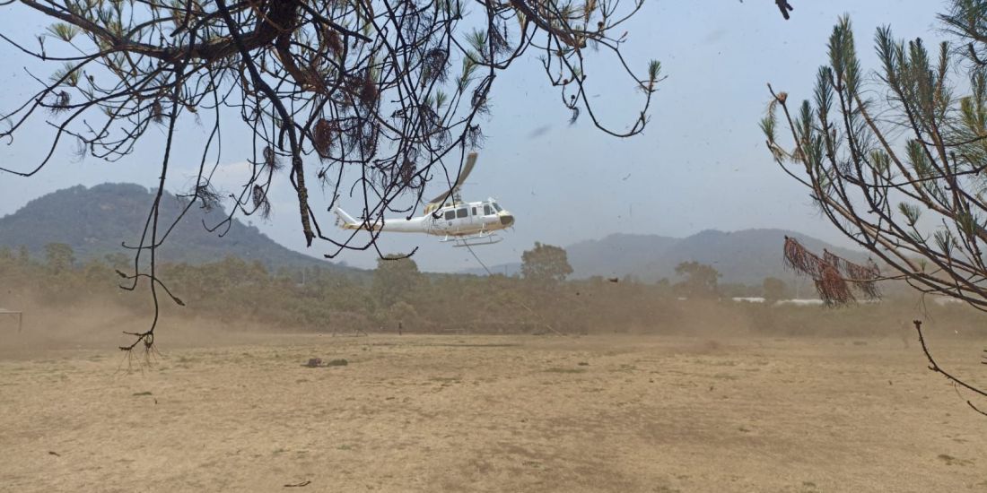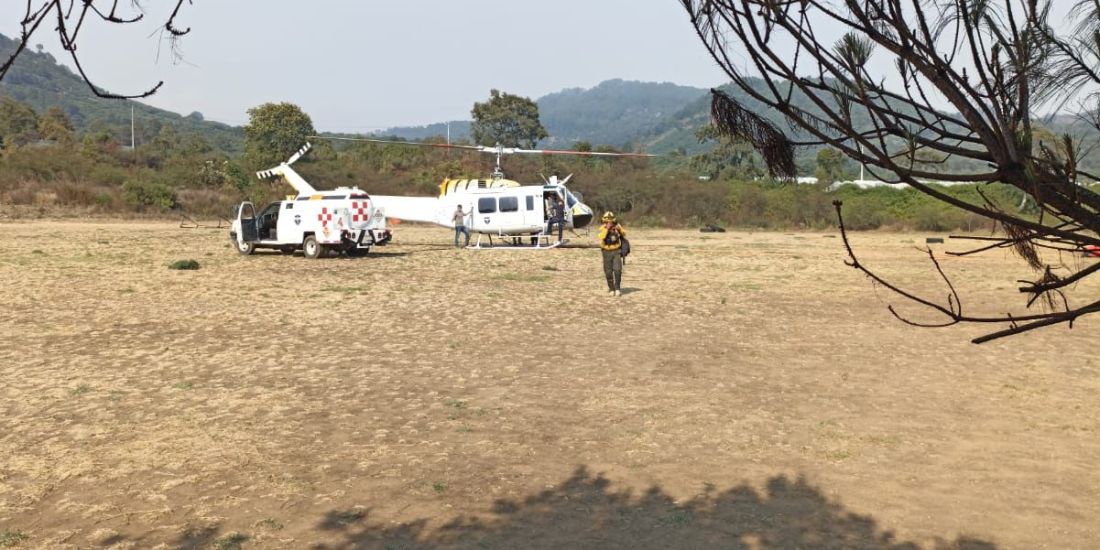 Señaló que el Gobierno del Estado ha destinado el equipamiento y personal para las labores de combate, acciones que se llevan a cabo por aire con el despliegue de una aeronave acondicionada con un helibalde y por tierra con las brigadas.