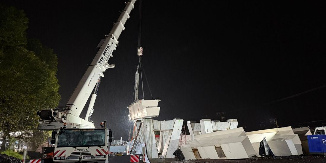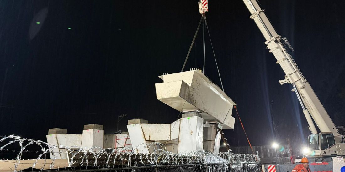En total serán 36 trabes de acero las que conformarán el puente superior La Hielera, que en la parte superior medirá 175 metros lineales, para dar una solución vial en una zona por donde transitan diariamente más de 27 mil vehículos, para llegar a lo que será la estación 2 del teleférico.