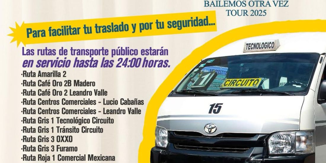 Al invitar a la población a utilizar el transporte público disponible para un traslado seguro y ordenado, la titular de la dependencia detalló que las rutas que extenderán su horario de servicio son: